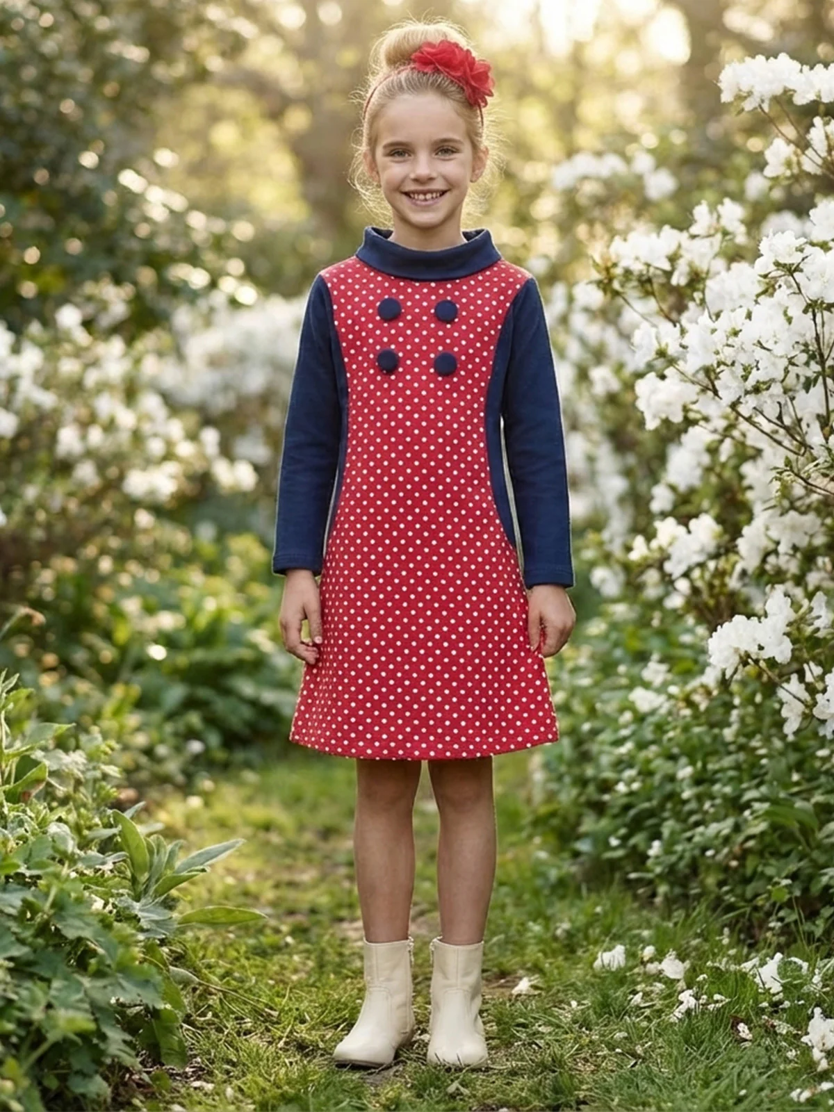 The Amy dress is a stylish girl's dress with a vintage feel. It is designed to be made in a cozy stretch fabric and is so comfortable to wear. Options include short or long sleeve and a stand up collar or t-shirt style neck.
