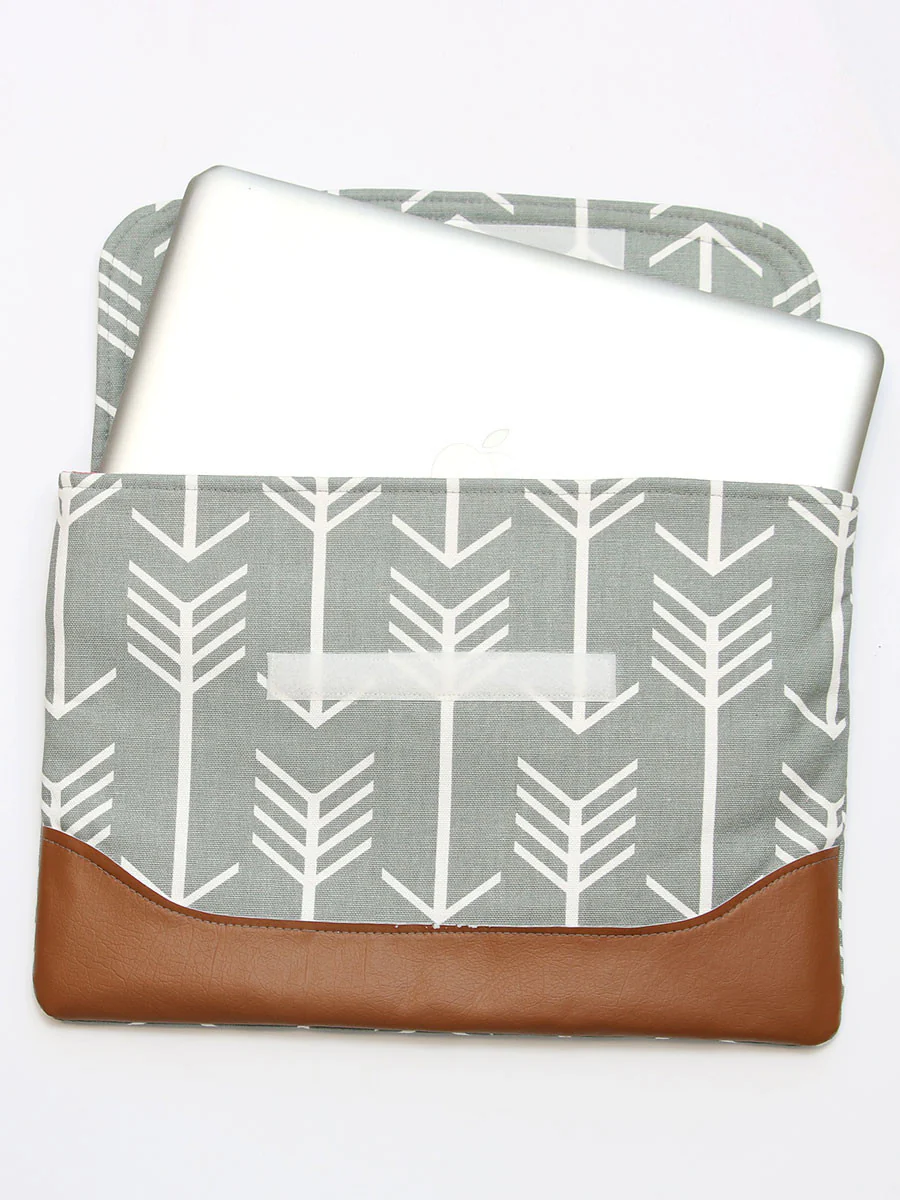 This laptop sleeve pattern comes in 3 sizes to fit your individual needs.
