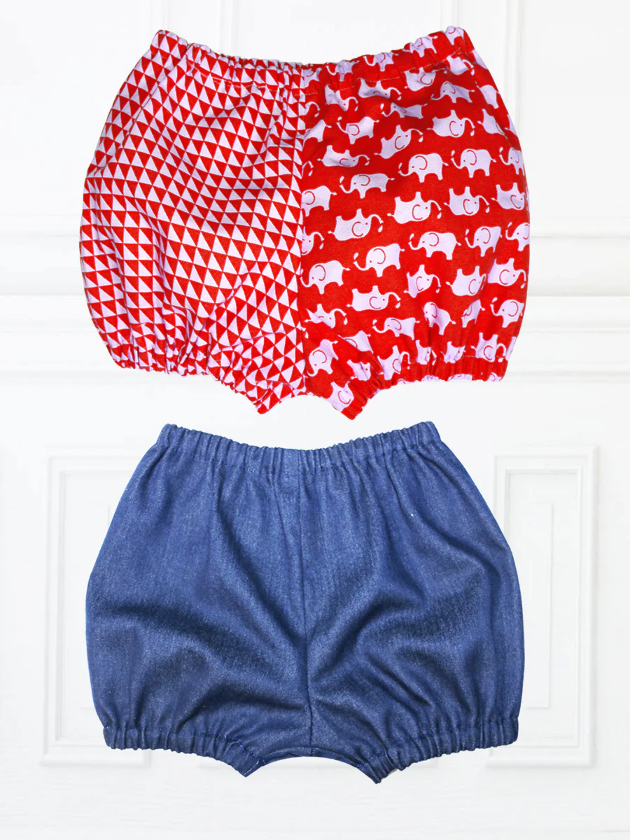 This sewing pattern is for a fast and easy unisex pair of shorts or bloomers. Most sewers could make this in under 30 minutes (sewing part only).